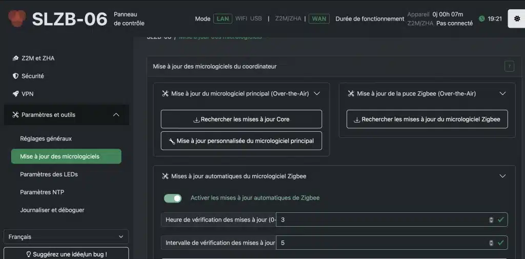 - Mise à Jour simplifié : Contrairement à d’autres dongles nécessitant des manipulations complexes pour les mises à jour, le SLZB-06 permet une mise à jour du firmware directement depuis son interface web, rendant le processus rapide et sans tracas.