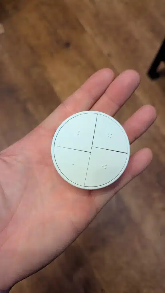 Le Sonoff SNZB-01M, c’est clairement l’un des boutons les plus complets et malins du marché. Son format rond et compact tranche avec les classiques interrupteurs carrés sans âme, tout en apportant une vraie touche de modernité.Toutefois, au-delà de son design, c’est sa polyvalence qui impressionne. En effet, il offre 4 zones tactiles et 4 types d’appuis par zone. Cela représente 16 actions différentes possibles. Et surtout, tout fonctionne en local, sans aucune latence. Une fois installé, on se surprend à l’utiliser pour tout : gérer les lumières, changer d’ambiance, activer un mode “nuit”, lancer la fermeture de tous les volets ou même déclencher une alarme discrète.